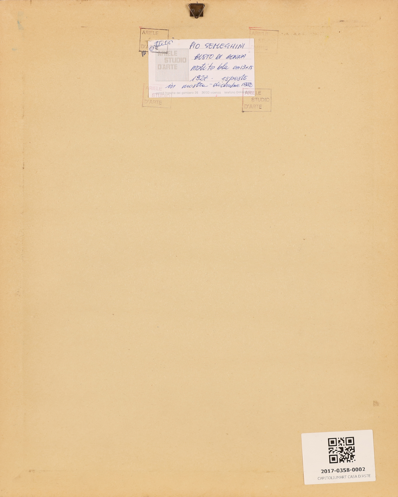 SEMEGHINI PIO (1878 - 1964) Busto di donna. 1927. Matita su carta. Cm 15,00 x 13,00. Firma in basso a destra. Al retro cartiglio descrittivo a cura di Ariele Studio d'Arte. Cornice presente