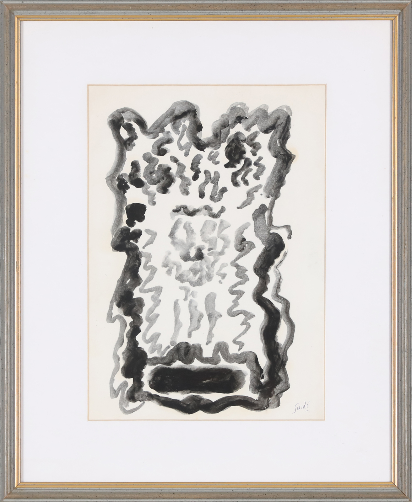 GUIDI VIRGILIO (1891 - 1994) Senza titolo. Acquarello su carta. Cm 35,00 x 25,00. Firma in basso a destra. Primi anni '60. Opera archiviata presso l'Archivio Storico Artisti Veneti, come documentazione fotografica allegata all'opera riportante il relativo numero di inventario. . Cornice presente