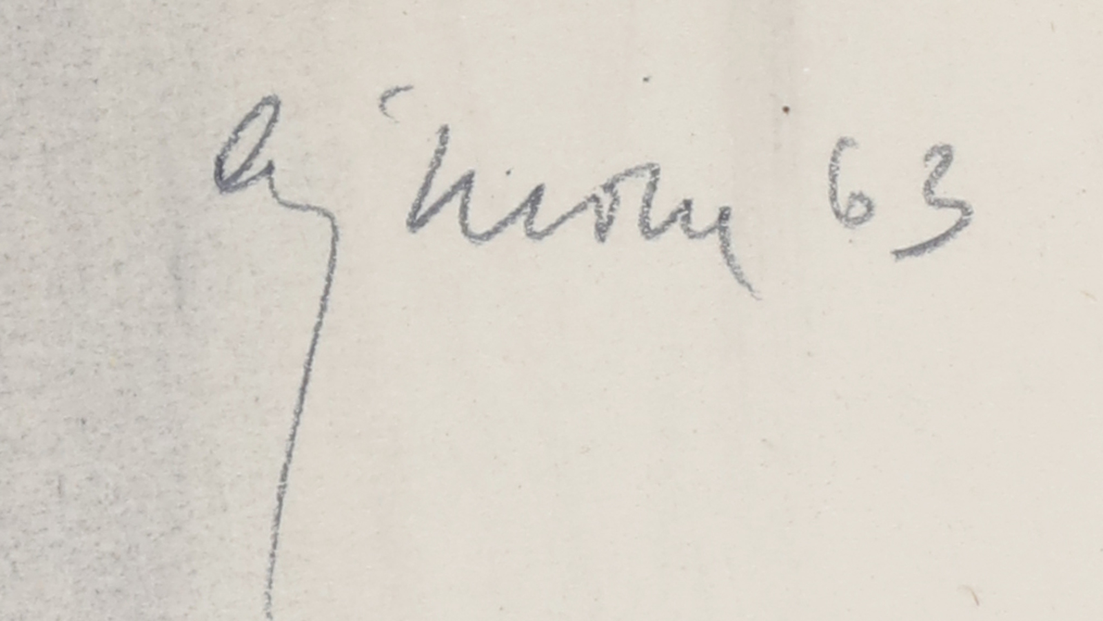 AJMONE GIUSEPPE (1923 - 2005) Senza titolo. 1963. Carboncino su carta. Cm 50,00 x 70,00. Firma e anno in basso a destra. Cornice presente