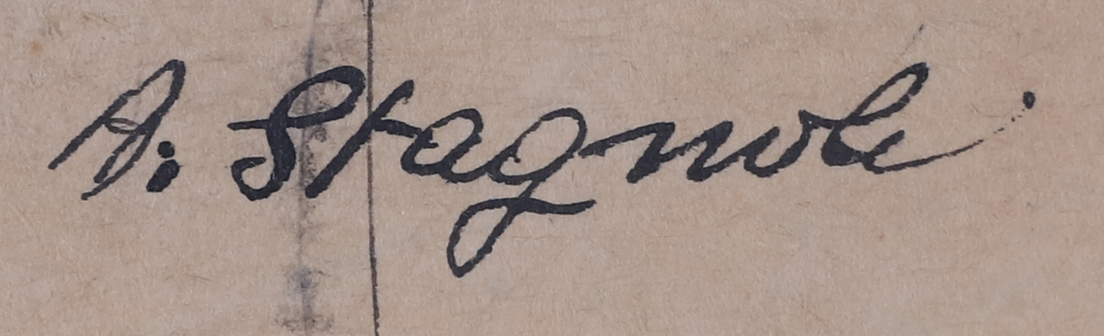 STAGNOLI ANTONIO (1922 - 2015) Senza titolo. Tecnica mista su carta. Cm 43,00 x 31,00. Firma in basso a destra. Cornice presente