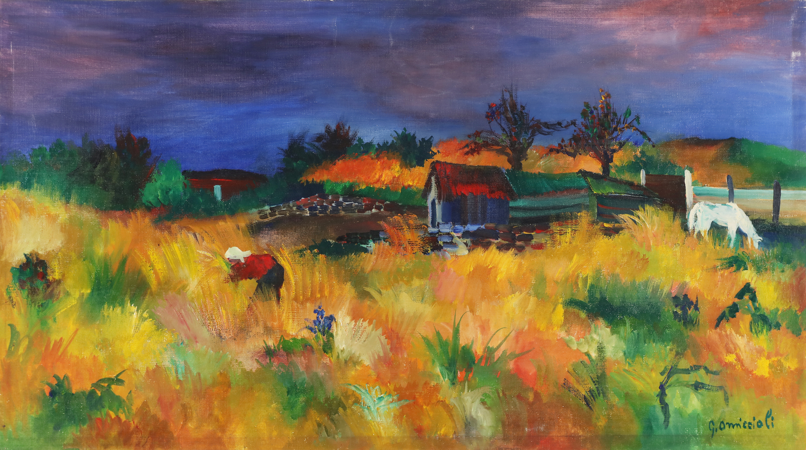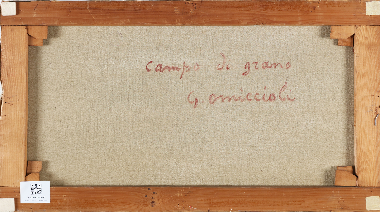 OMICCIOLI GIOVANNI (1901 - 1975) Campo di grano. Olio su tela . Cm 70,00 x 40,00. Firma in basso a destra. Al retro titolo e firma,