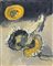 BARBARO SAVERIO (n. 1924) Due girasoli e piatto giallo. . 1971. Olio su tela...