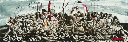 Alfredo Nannoni Tavernelle Val di Pesa (Fi) 1925 Battaglia, 1998 Tecnica mista su tela, cm. 20x60 Firmato in basso a destra. Sul verso: etichetta dell'Artista con descrizione.