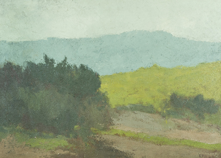 Ernesto Buglioni Osimo 1938 Colli Laziali Olio su tela, cm. 80x110 Firmato in basso a destra. Sul verso: firma e titolo. Certificato di Autenticità "Telemarket", Brescia.