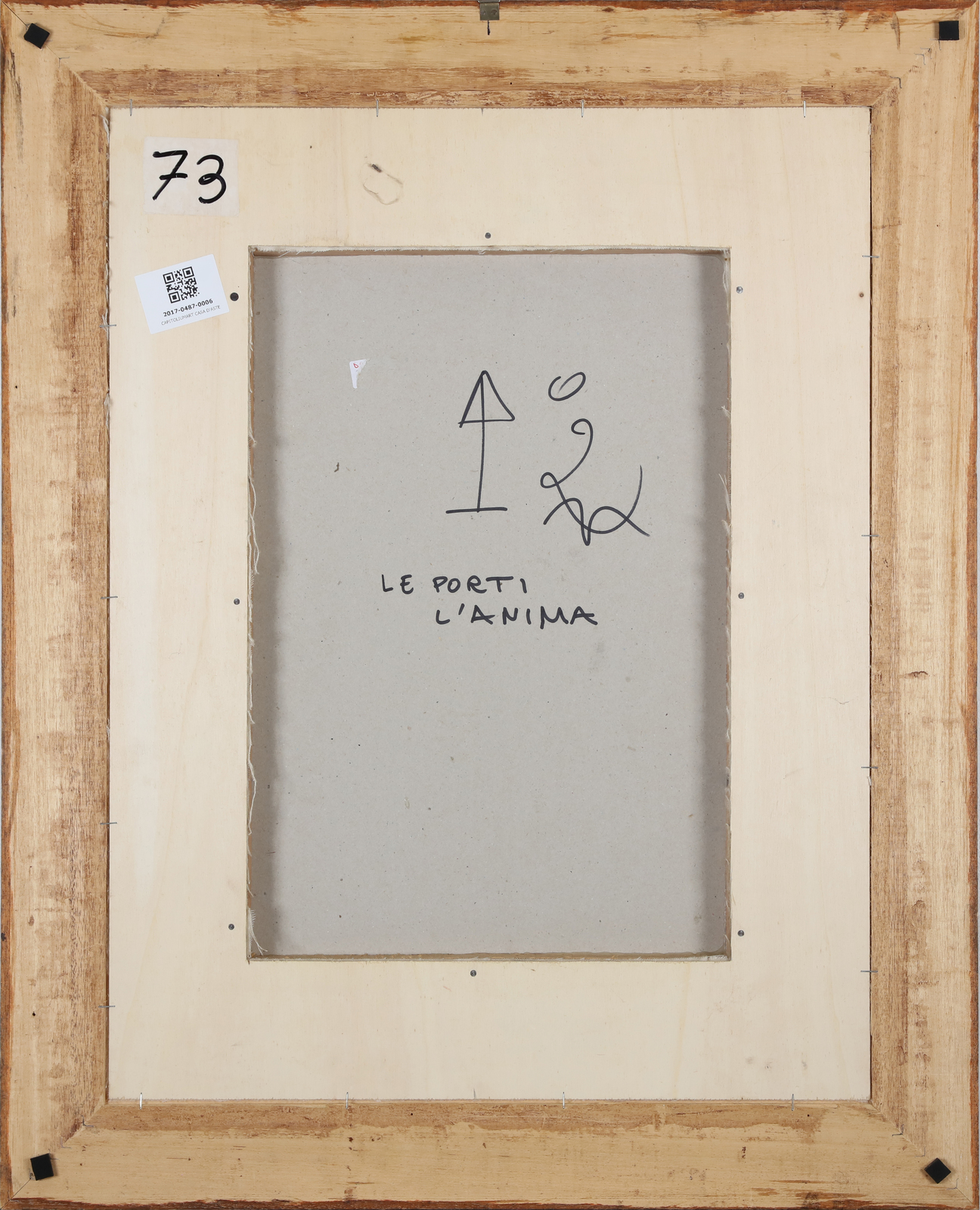 CECCOBELLI BRUNO (n. 1952) Le porti l'anima. . Collage su cartone. Cm 35,00 x 50,00. Al retro titolo. . Cornice presente