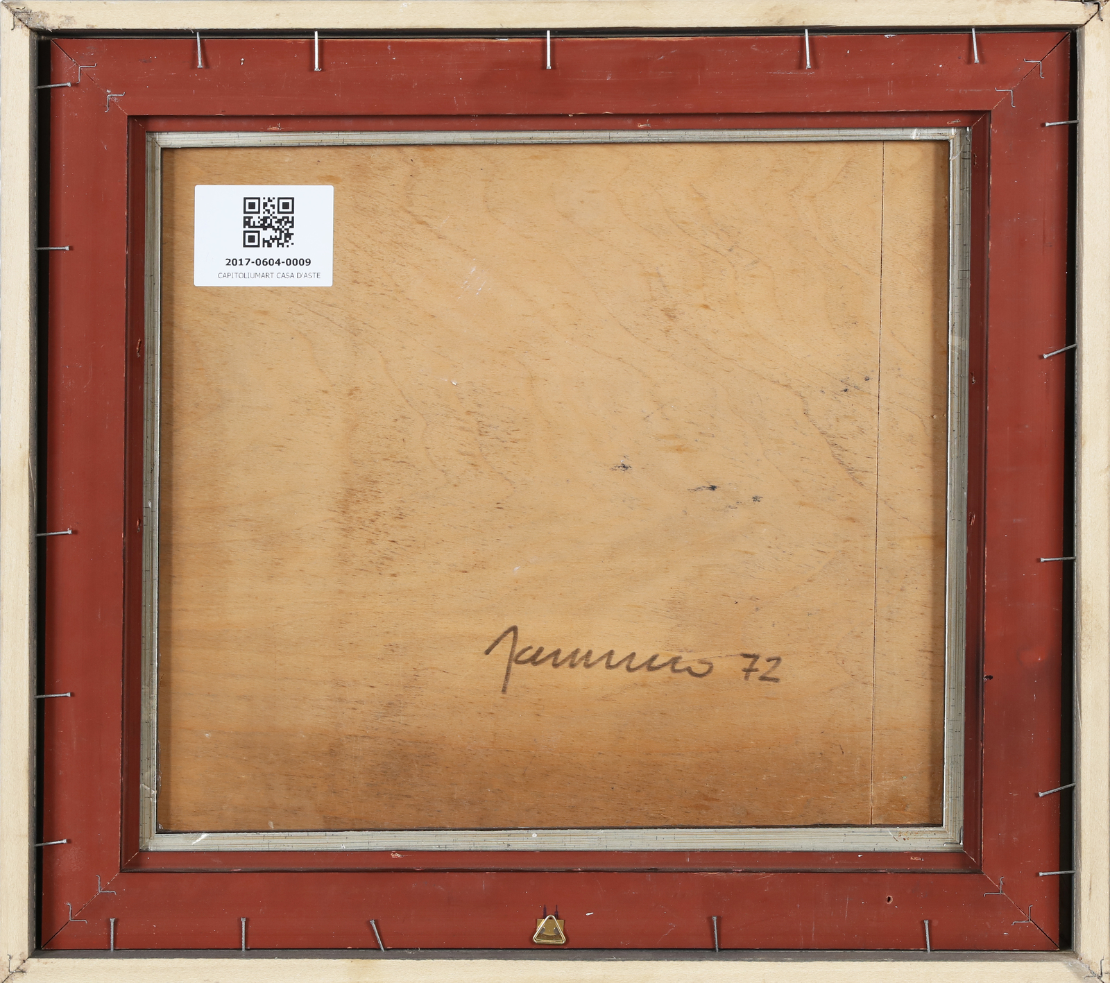 SARENCO (ISAIA MABELLINI) (n. 1945) Morta più che natura. . 1972. Tecnica mista su carta. Cm 32,00 x 28,00. Al retro firma e anno. . Cornice presente