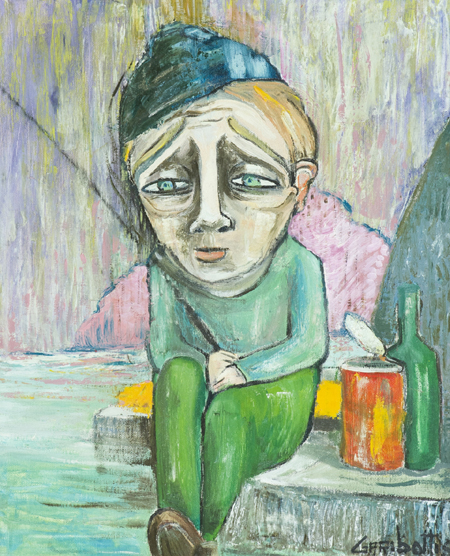 Giselda Garibotti Pecheur au Pont Neuf Olio su tela, cm. 50x40 Firmato in basso a destra. Sul verso: certificato di Autenticità "L'elite selezione arte Italiana", Varese; Etichetta "primo Concorso Nazionale di Pittura e Grafica città di Melegnano, 1983"; Etichetta "Accademia Tiberina Unione della Legion d'Oro, Opera esposta a Roma, nella sala di via del fiume".