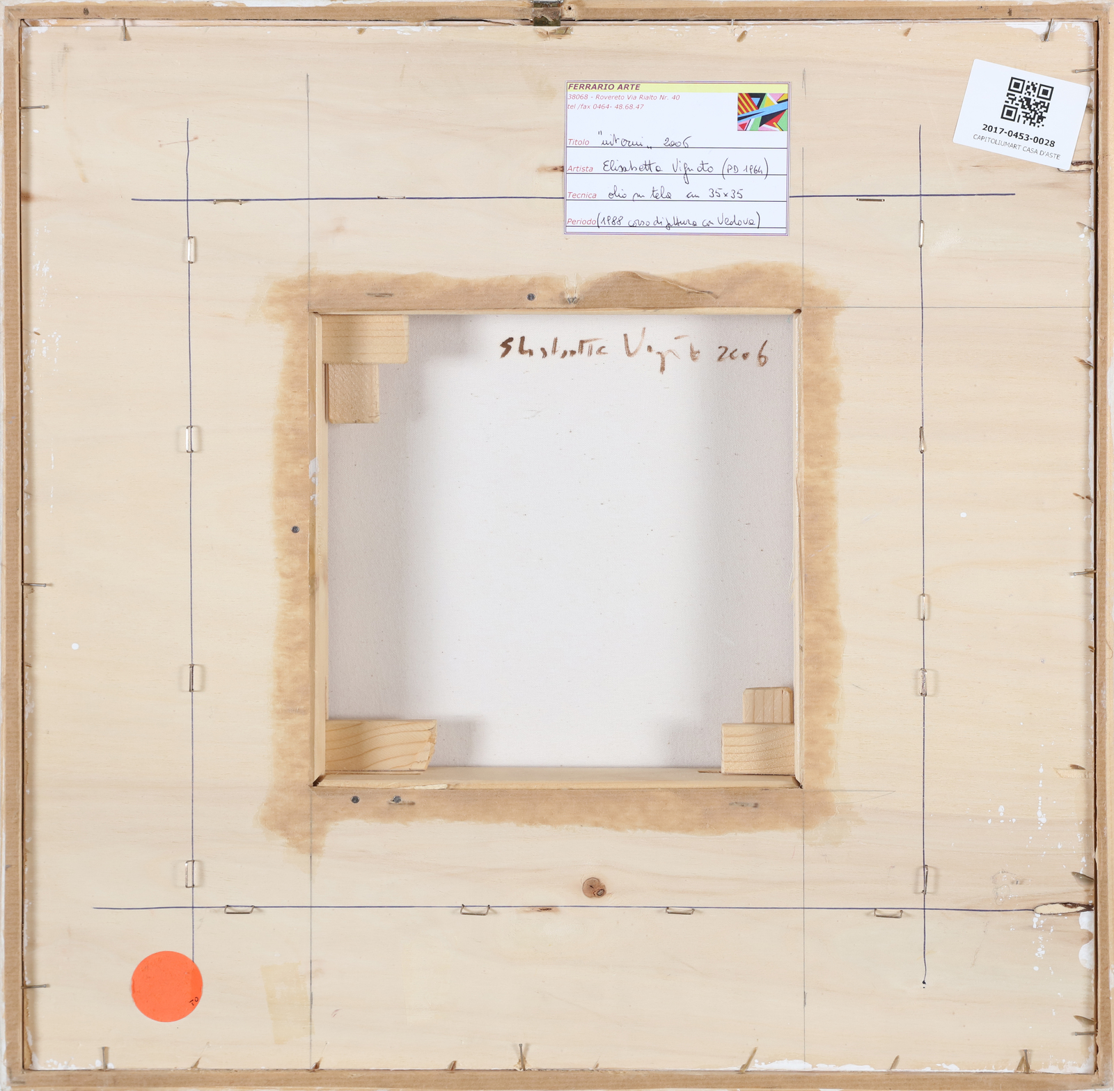VIGNATO ELISABETTA (n. 1964) Interni. 2006. Olio su tela . Cm 35,00 x 35,00. Al retro firma e anno. Cartiglio descrittivo Ferrario Arte, Rovereto.
