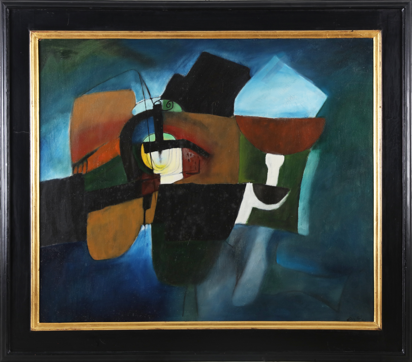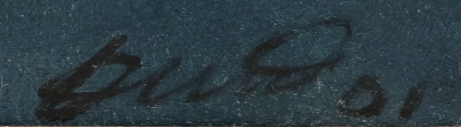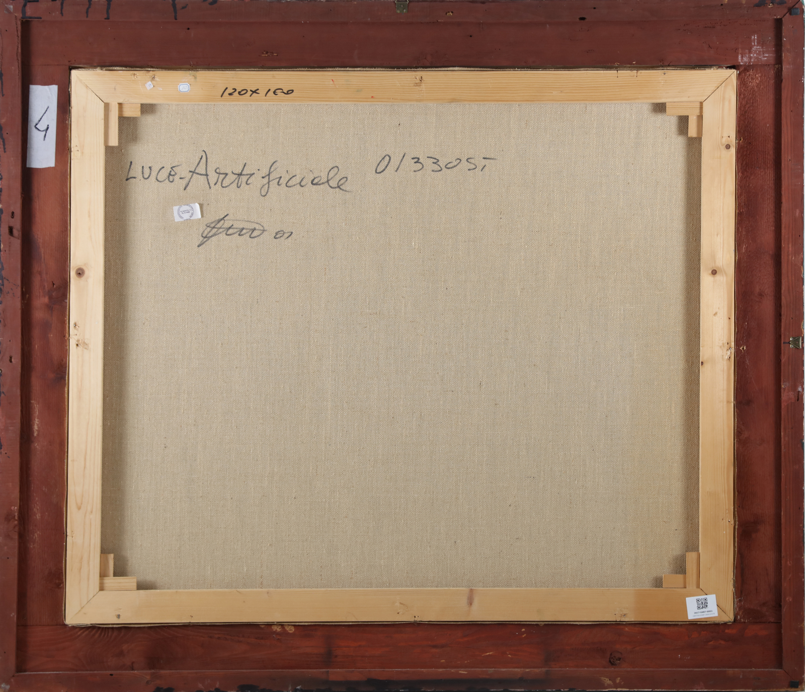 DE LUTTI PIERLUIGI (n. 1959) Luce artificiale. . 2001. Olio su tela . Cm 120,00 x 100,00. Firma e anno in basso a destra. Al retro titolo, firma e anno. Timbro Associazione Margutta. Cornice presente