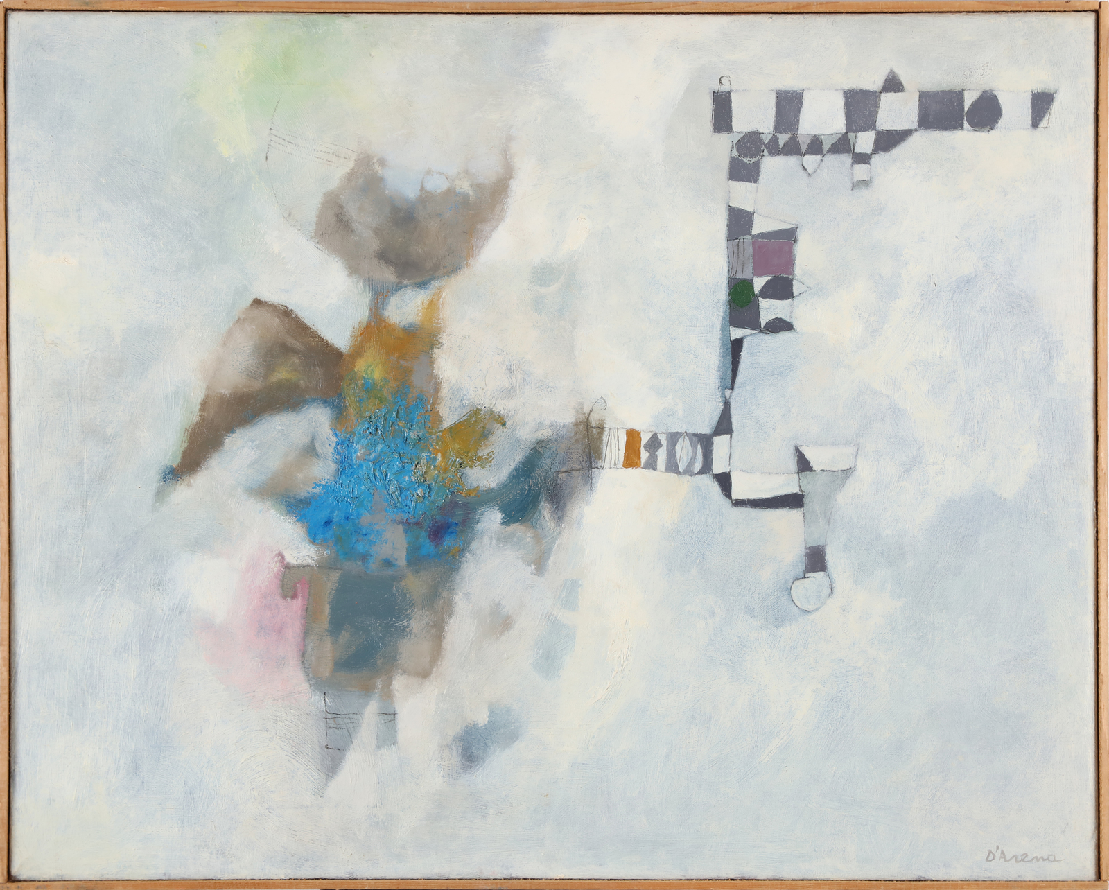 D'ARENA FRANCESCO (1916 - 1988) Senza titolo. Tecnica mista e olio su tela. Cm 75,00 x 60,00. Firma in basso a destra e al retro. Cornice presente