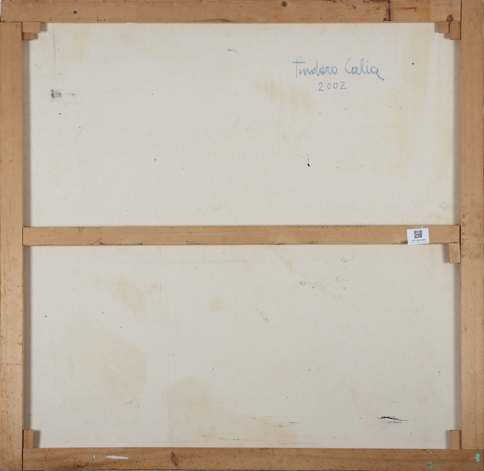 TINDARO CALIA (n. 1956) Senza titolo. . 2002. Olio su tela . Cm 120,00 x 120,00. Firma in basso a destra. Al retro firma e anno.