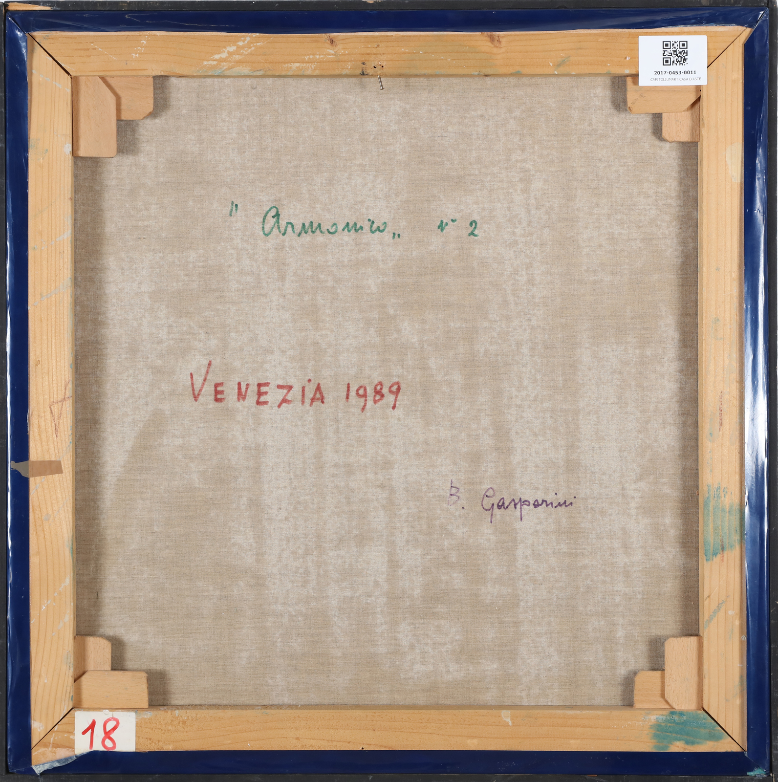 GASPARINI BRUNA (1917 - 1998) Armonico n.2. . 1989. Tecnica mista su tela. Cm 60,00 x 60,00. Firma in basso a destra. Al retro titolo, firma e anno.