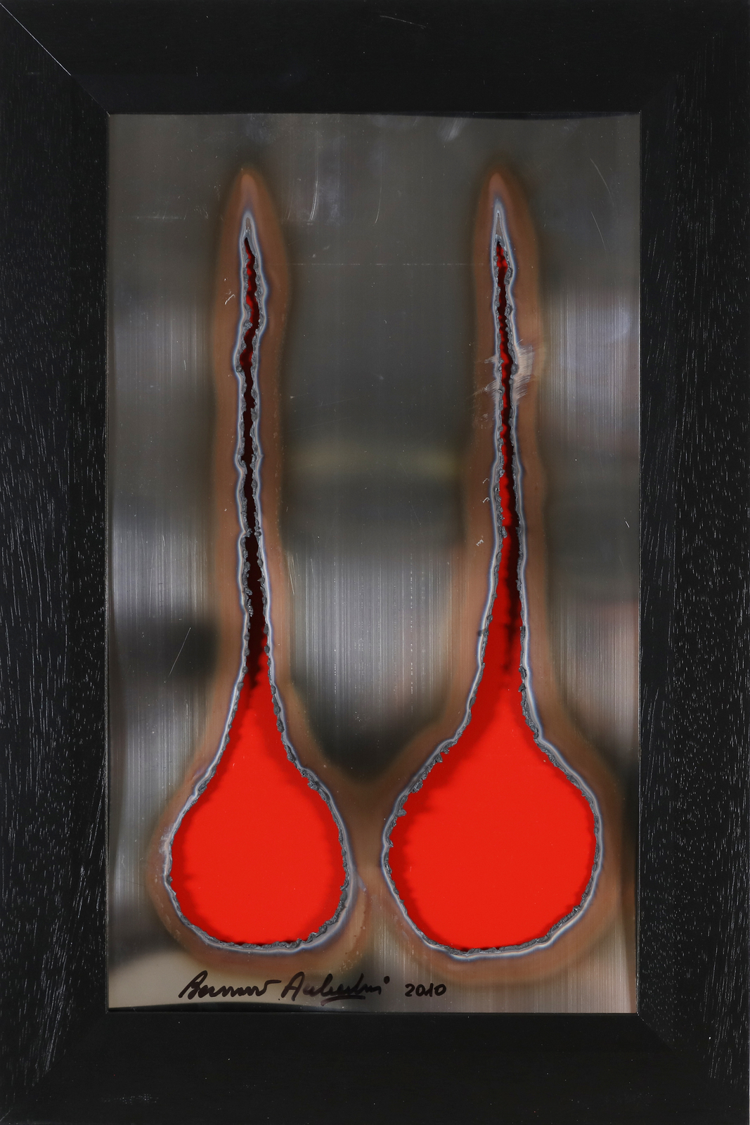 AUBERTIN BERNARD (1934 - 2015) Senza titolo. . 2010. Lamiera bruciata. Cm 30,00 x 50,00. Firma e anno in basso. Opera archiviata presso l'Archivio Bernard Aubertin, Brescia - Giancarlo Rovetta, come da documentazione fotografica allegata all'opera riportante il relativo numero di inventario. . Cornice presente