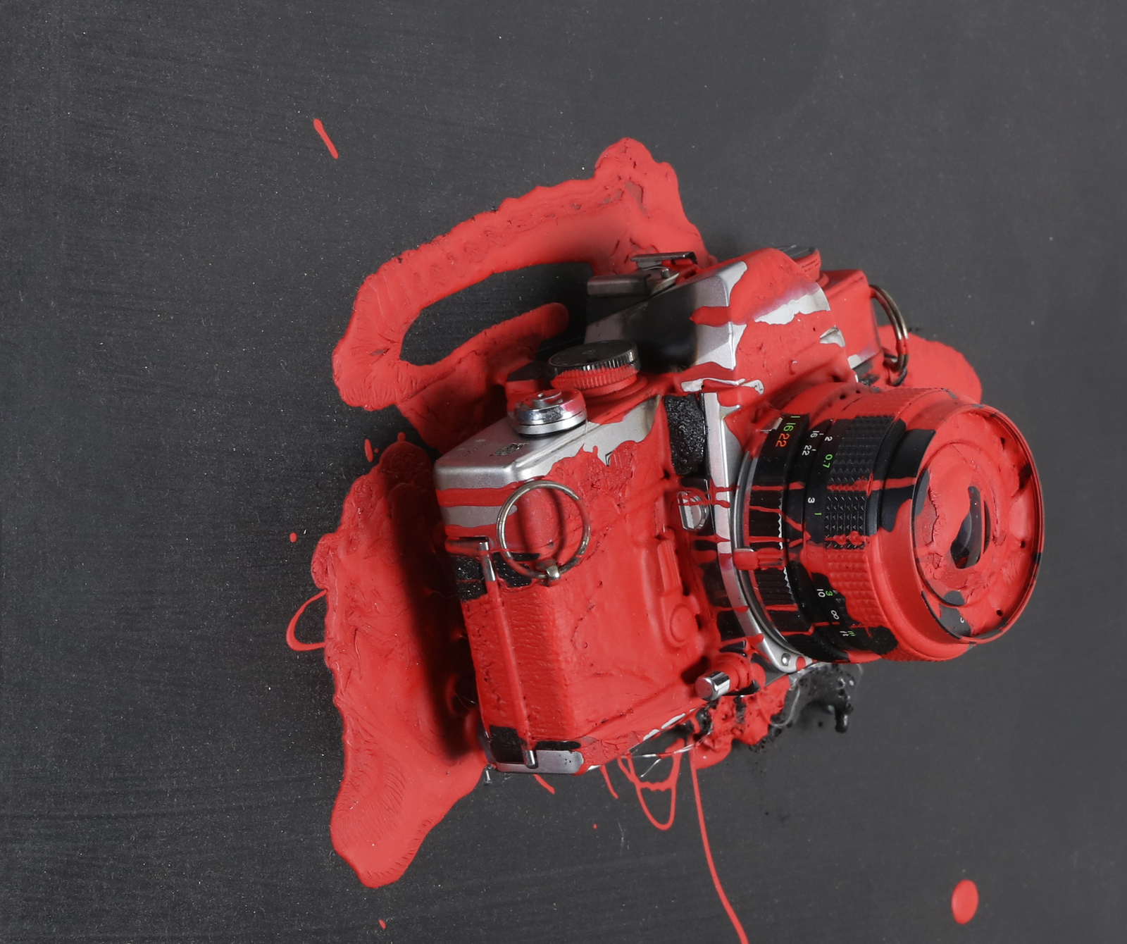 AUBERTIN BERNARD (1934 - 2015) Macchina fotografica. 2010. Tecnica mista su tavola. Cm 30,00 x 40,00 x 13,00. Firma e anno alla base. Opera archiviata presso l'Archivio Bernard Aubertin, Brescia - Giancarlo Rovetta, come da documentazione fotografica allegata all'opera riportante il relativo numero di inventario.