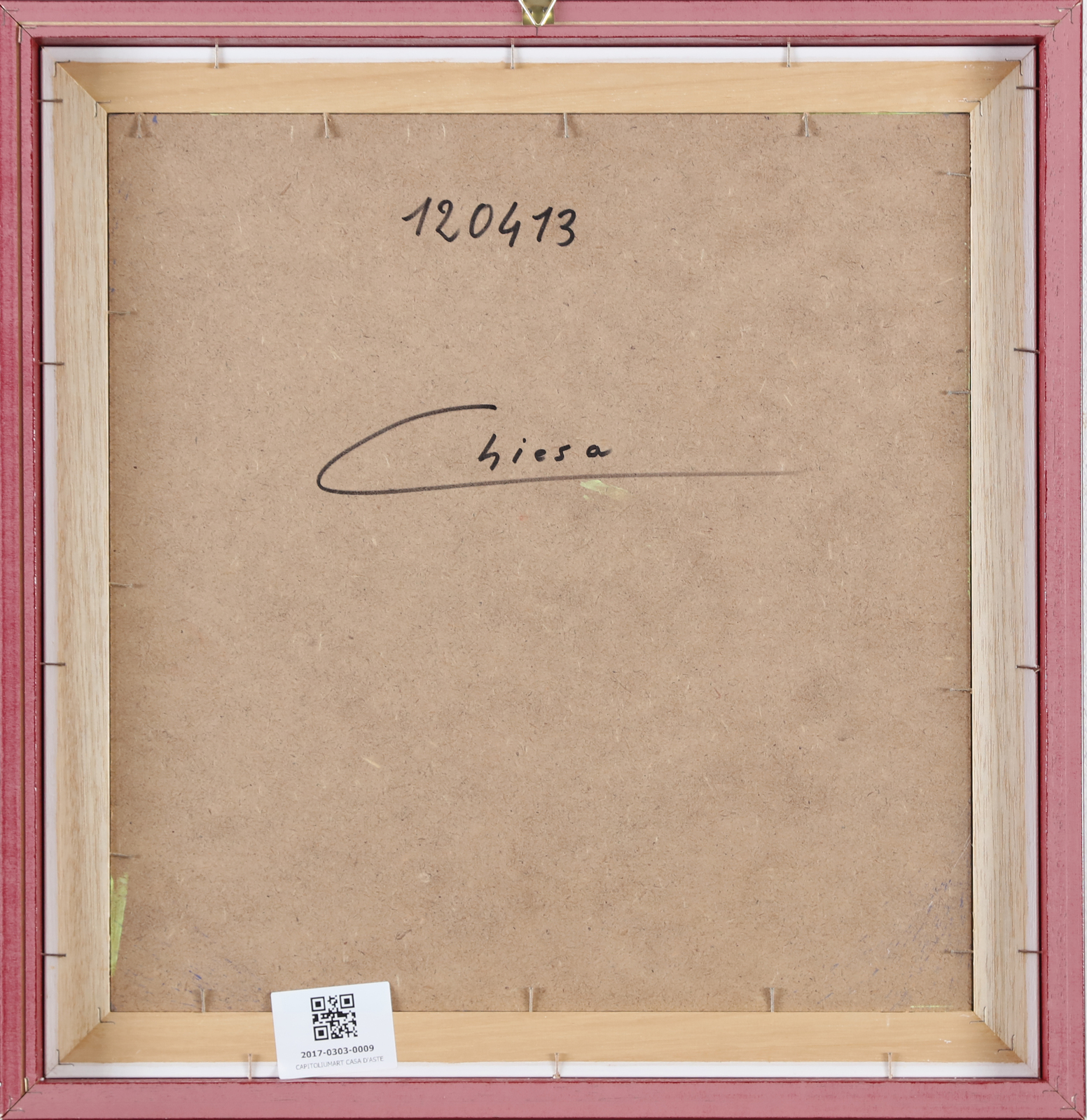 CHIESA RENATO NATALE (n. 1947) Orbitale. 2012. Acrilico su tavola. Cm 38,05 x 40,00. Al retro firma. Opera archiviata presso Arte Capital, Milano, come da documentazione fotografica allegata all'opera riportante il relativo numero d'inventario con firma dell'artista. . Cornice presente
