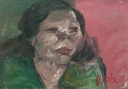 Anonimo Figura Olio su cartone, cm. 10,5x15 Firma illeggibile in basso a destra.