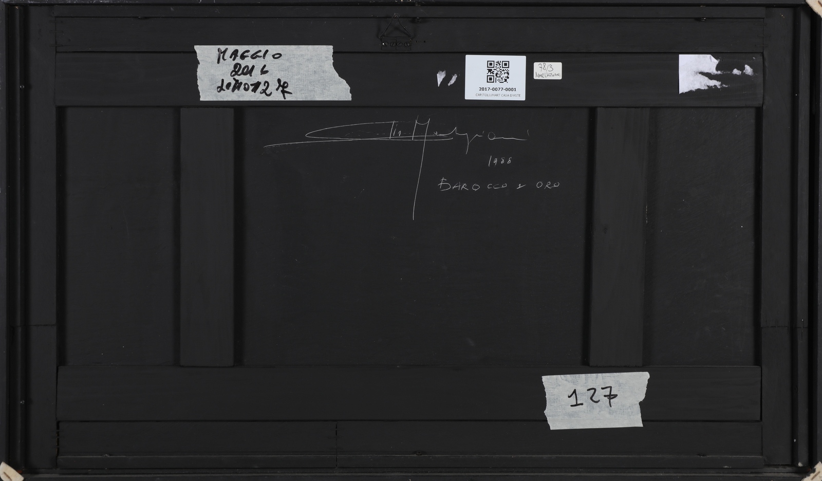 MARCHEGIANI ELIO (n. 1929) Barocco y oro. . 1988. Tecnica mista su ardesia. Cm 70,00 x 50,00. Al retro titolo, firma e anno. Autentica dell'artista su fotografia.