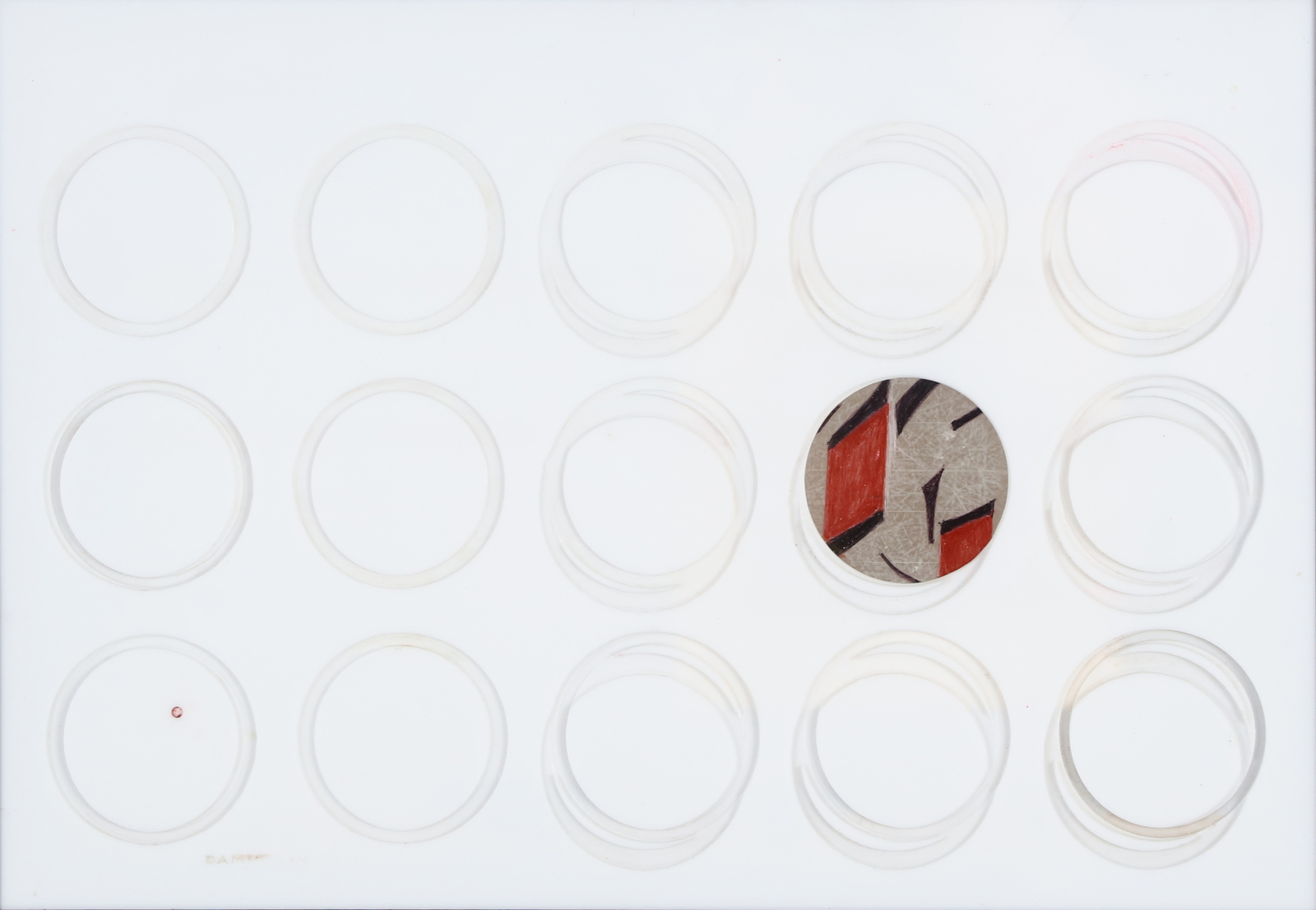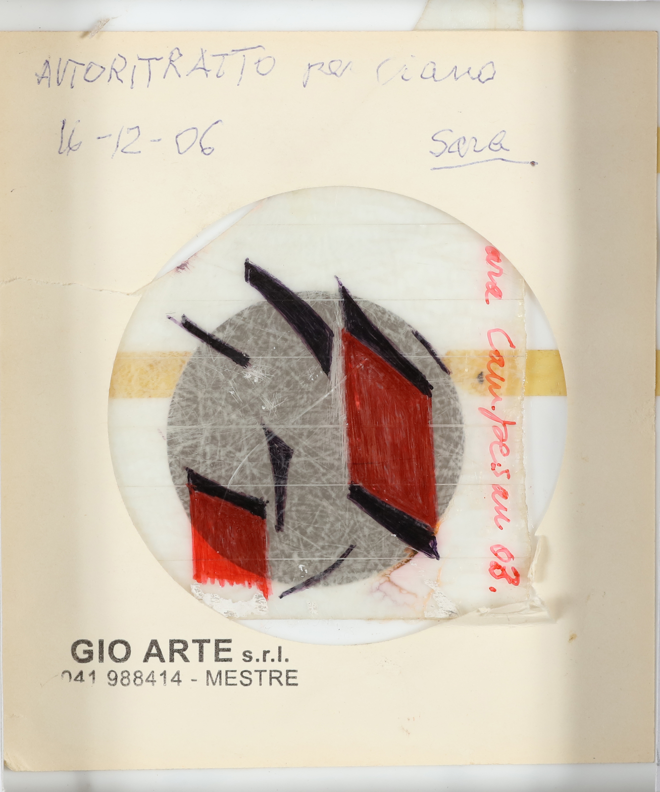 CAMPESAN SARA (n. 1924) Senza titolo. 2003. Tecnica mista su plastica. Cm 35,00 x 24,00. Firma in basso a sinistra. Al retro firma, anno e timbro Gio Arte srl, Mestre. Cornice presente