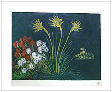 CORRADO CAGLI Ancona 1910 – Roma 1976 Senza titolo Acquatinta a colori es.63/90. Firma in b. a d. (70 x 85 ca. foglio – 42 x 59 inc.) B.A. 50