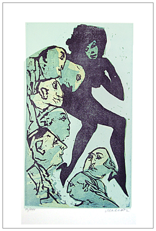 MINO MACCARI Siena 1898 – Roma 1989 Senza titolo Linoleumgrafia a colori es.XI/XXV. Firma in b. a d. (70 x 50 foglio – 48 x 28 lin.) B.A. 50
