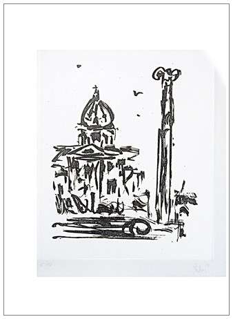 GIOVANNI STRADONE Nola 1911 – Roma 1981 Senza titolo 1950 Incisione maniera a zucchero es.5/90. Firma e data in b. a d. (69,5 x 49,5 foglio – 26 x 22 inc.) B.A. 50