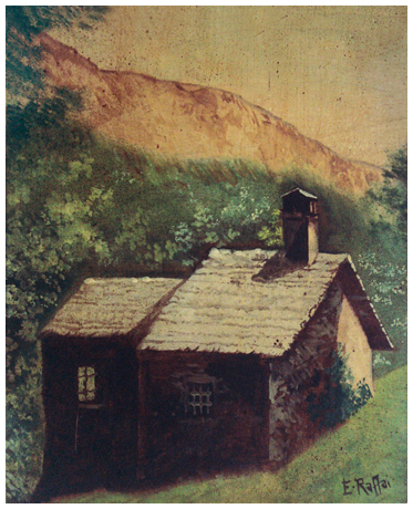 E. RAFFAI Senza titolo Olio su tavola 33,5 x 26. Firma in b. a d. B.A. 50
