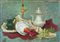 Osman Lorenzo De Scolari Palermo 1908 - Firenze 1998 Natura morta Olio su faesite, cm. 50x70 Firmato in alto a destra. Sul verso: Certificato di Autenticità dell'Artista.