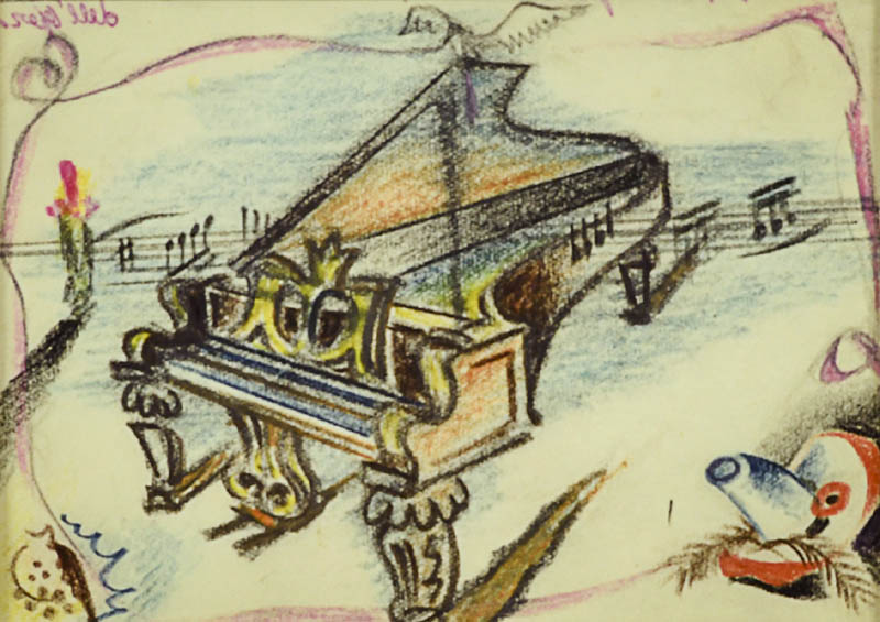Enrico Prampolini (Modena 1894 Roma 1956) I capricci di Callot - Bozzetto di scena, 1942 Matite su carta, cm. 11,5x14,5. Firma, data e titolo in alto al centro.