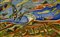 Riccardo Magni ( 1886 1964) Aerei nemici sulla diga del sol, Olio e collage su carta intelata, cm. 12x21. Firmato in basso a destra. Certificato di provenienza "Galleria Lifeland '69", Roma, con descrizione.