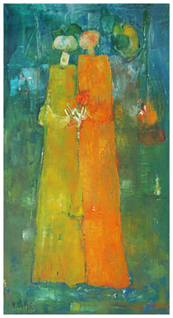 ALESSANDRO VOLPI Pisa 1909 – Pisa 1978 Senza titolo Olio su tela 65 x 35. Firma in b. a s.; sul verso dedica e firma. B.A.: 200