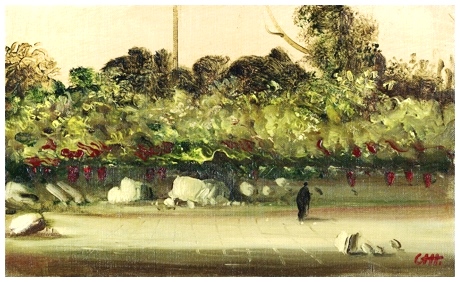 PIETRO ANNIGONI Milano 1910 – Firenze 1988 Il viaggio anni ‘70 Olio su cartone telato 17 x 28. Firma in b. a d. e sul verso. Autentica dell’autore + num. archivio su foto. Autentica e num. archivio con timbro e firma Gilberto Grilli, Fano su foto. B.A.: 500