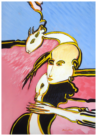 REMO BRINDISI Roma 1918 – Milano 1996 Senza titolo (Pastorale) 1981 Pittura e tempera su tela cartonata 70 x 50. Firma in b. a d.; sul verso tecnica, scritta di autentica e firma + etichetta di autenticità Galleria Bonaparte, Milano. B.A.: 290