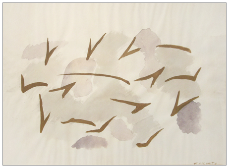 GIULIO TURCATO Mantova 1912 – Roma 1995 Composizione 1962 ca Acquarelli su carta 48 x 66. Firma in b. a d.; num. archivio sul verso. Autentica e num. arch. Archivio Giulio Turcato, Roma con firma Ettore Caruso su foto. B.A.: 2.900