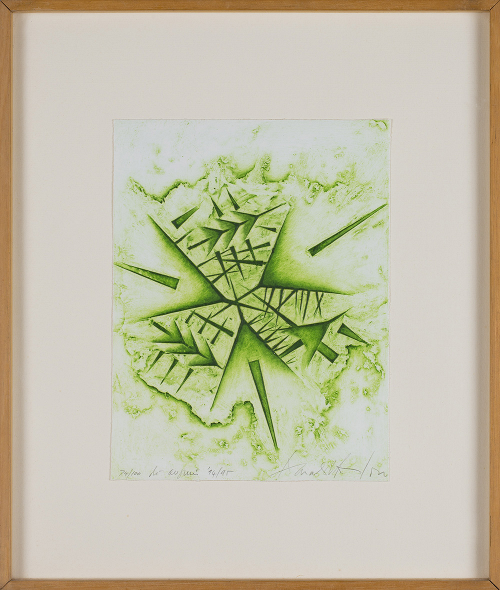 Firma, datazione, iscrizione e numerazione (Esemplare 74/100) a matita al fronte
