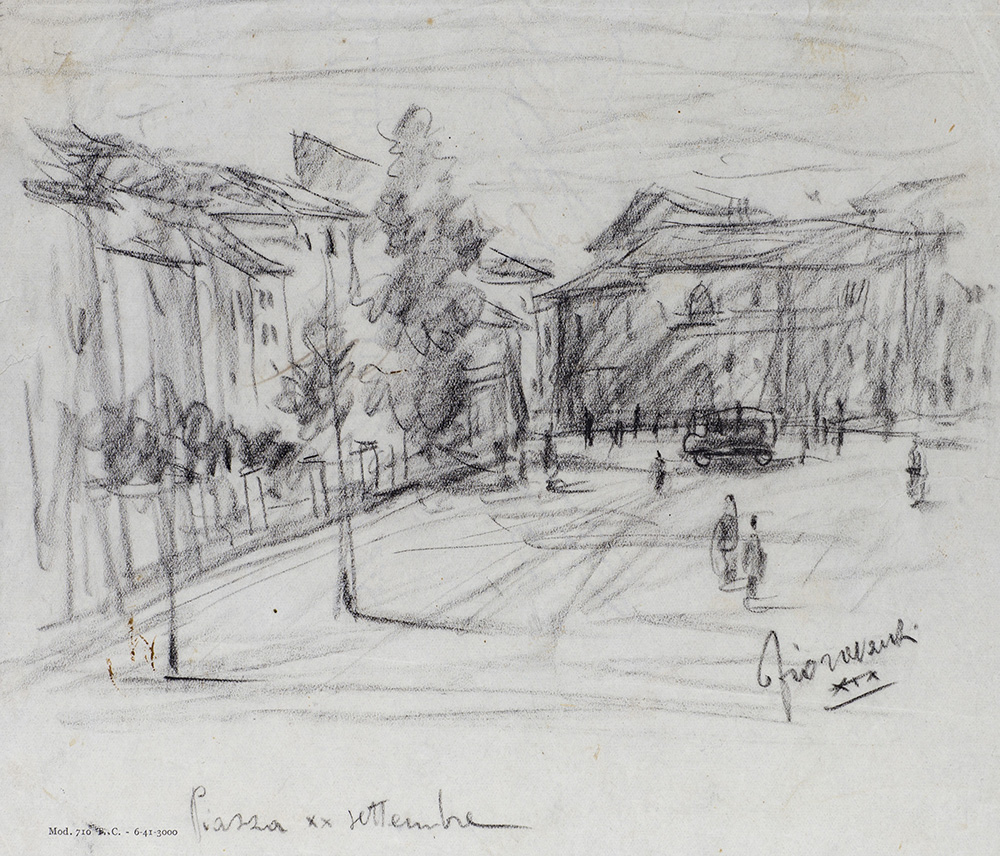 ANONIMO Piazza XX Settembre Matita su carta cm 19x22 Firma indecifrata e...