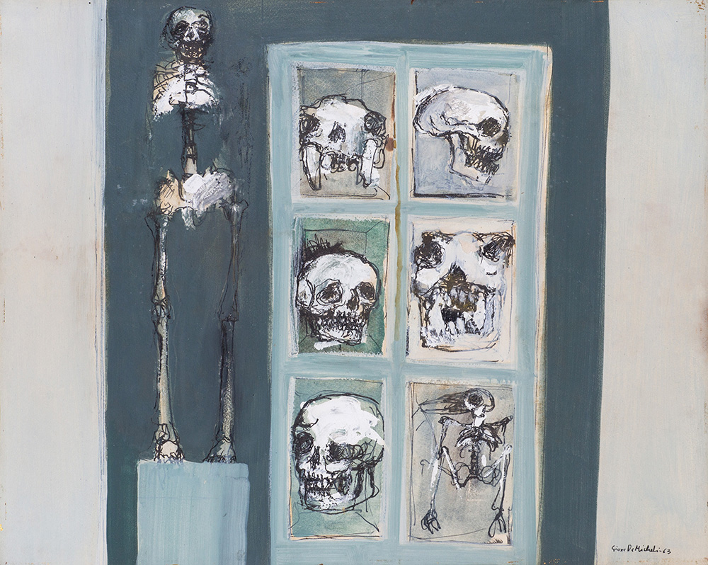 GIOXE DE MICHELI (1947) Scheletri in vetrina, 1963 Olio su carta cm 53x41,5...