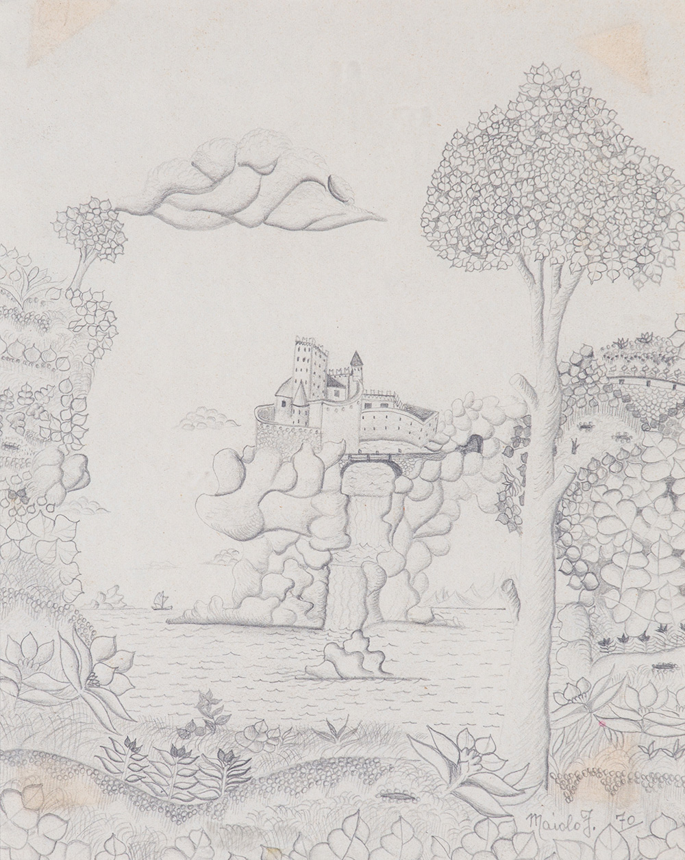 FRANCESCO MAIOLO (1940-2013) Castello Fantastico, 1970 Matita su carta cm...