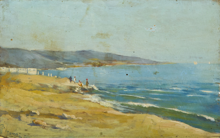 Anonimo Marina Olio su tavola, cm. 16,5x25,5 Firma illeggibile e data in basso a sinistra.