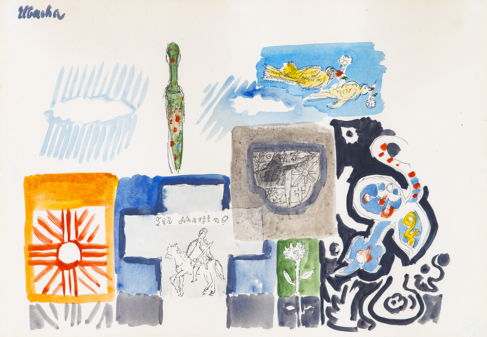 MACHA Senza Titolo Tecnica mista e acquerello su carta cm 33,5x48,5 Firma al...