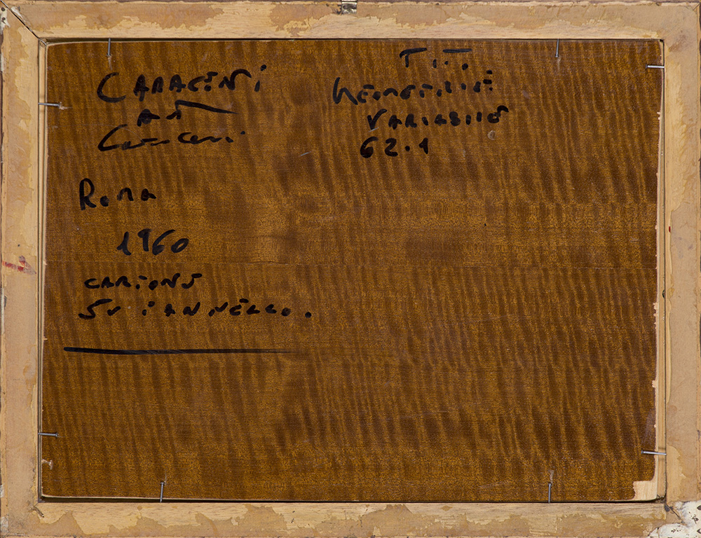 Firma, titolo, datazione, tecnica e località al retro della tavola