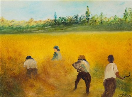 NANDO CHIAPPA (1934) Mietitura, 1984 Olio su tela cm 30x40 Firma al fronte...