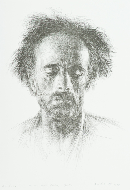 Renato Santini Viareggio 1912 - Viareggio 1995 Volto, 1985 Litografia su carta, cm. 50x35, es. P.A. Firma e data in basso a destra, dedica a persone in basso al centro.
