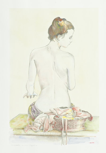 Walter Falconi Firenze 1935 Lotto unico di due Opere - "Nudo", Litografia ritoccata a mano, cm. 70x50, firmato in basso a destra; - "Vestale", 1986, Litografia su carta, cm. 50x70, es. P.A., firma in basso a destra, data e dedica a persona in basso al centro.