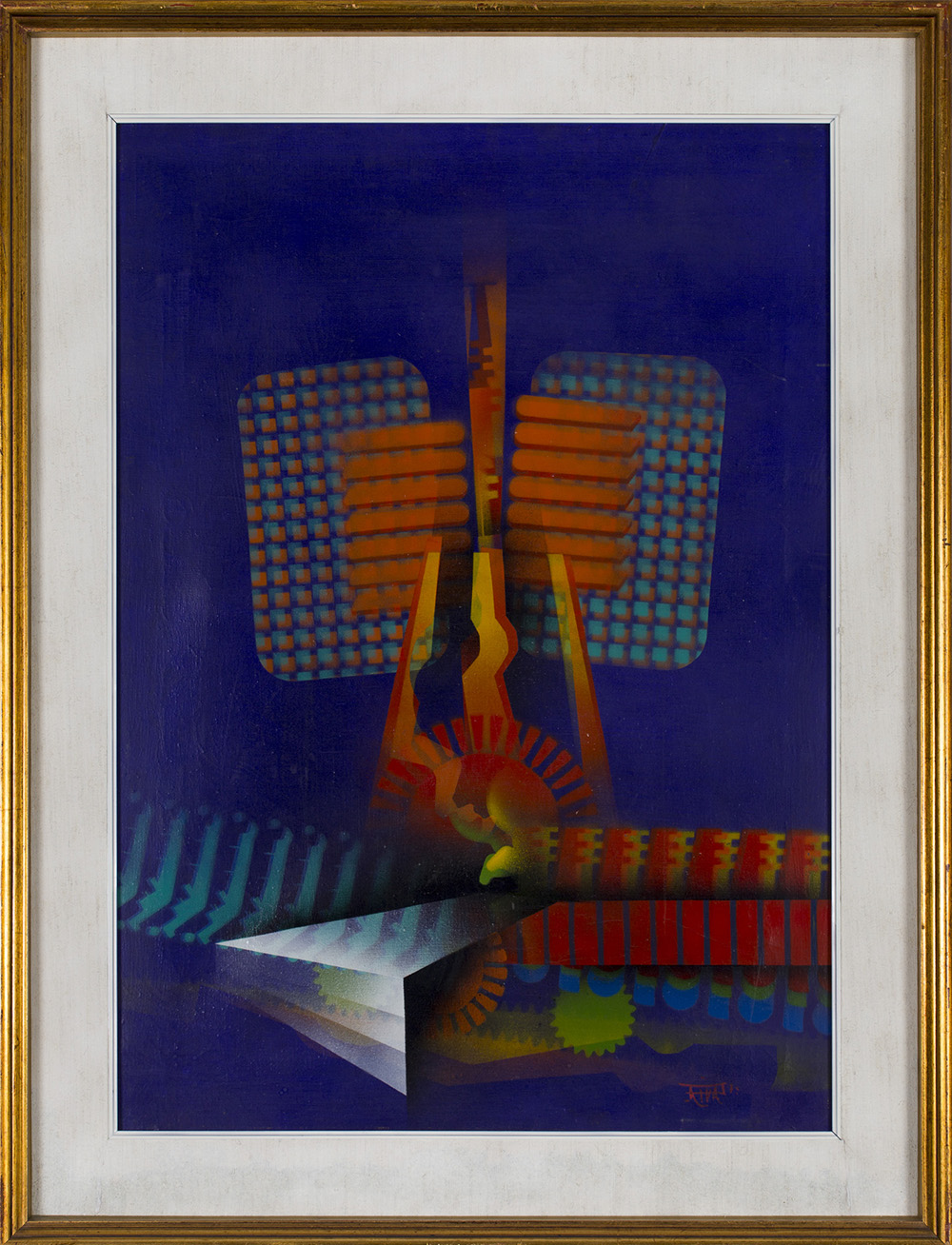 ROBERTO RIVA (1939) Macchina cosmica, 1971 Tecnica mista su tela cm 70x50...