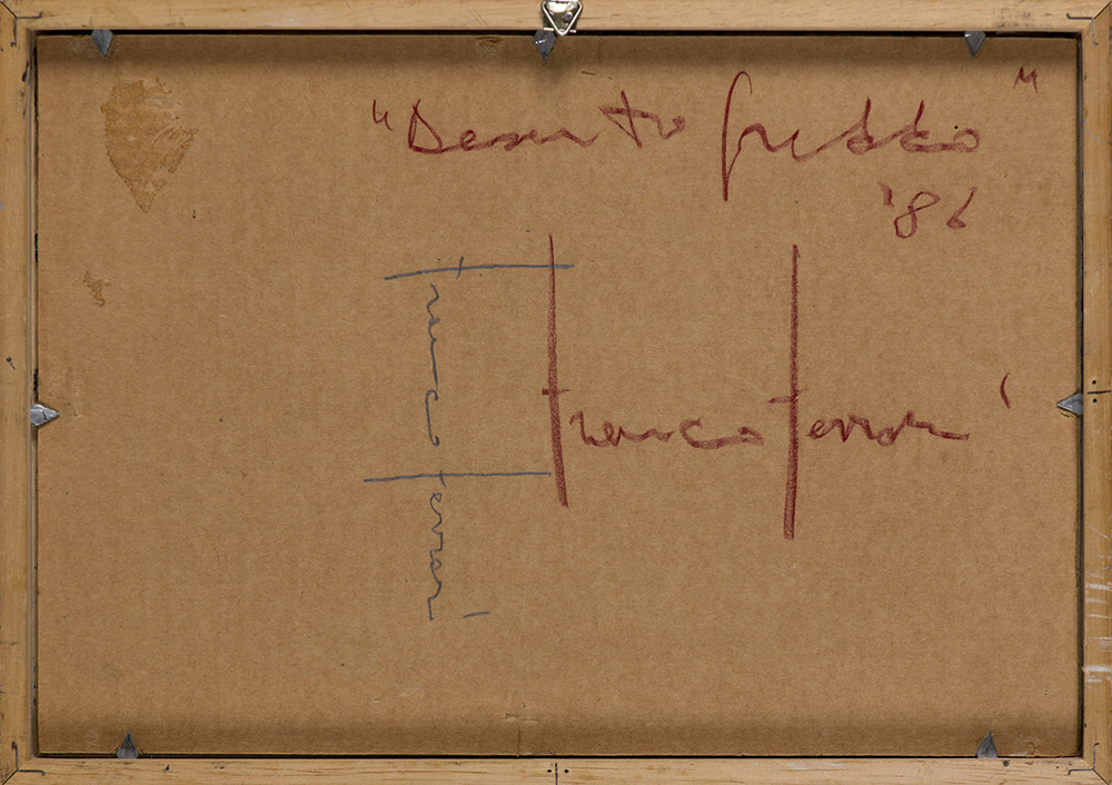 Doppia firma, titolo e datazione al retro del cartone protettivo