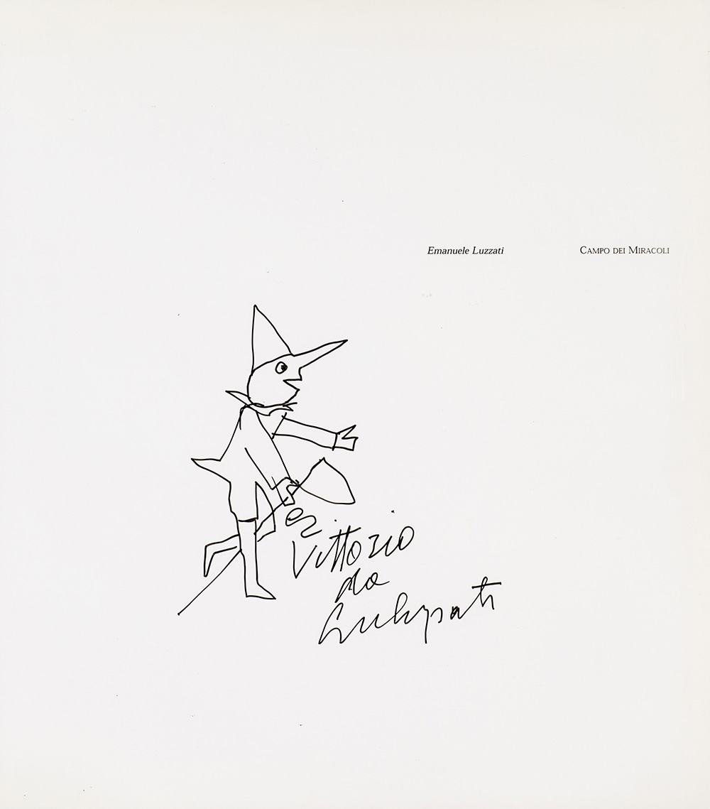 Opera realizzata su una pagina incorniciata del catalogo "Emanuele Luzzati - Campo dei miracoli" (allegato)