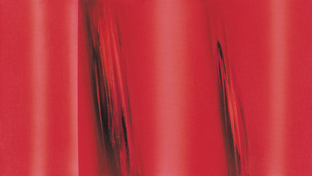 ENNIO FINZI Venezia 1931 - Il verso del colore in rosso, 2006, acrilico su tela cm. 45x80, firma, titolo e anno al retro, dichiarazione d'autenticità dell'artista e Archivio Ennio Finzi su foto.