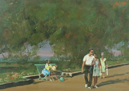 Lorenzo Palazzi Livorno 1921 - Livorno 1990 Passeggiata, Tirrenia Olio su...