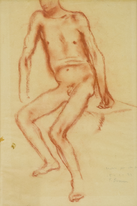 Felice Carena Cumiana (To) 1879 - Venezia 1966 Studio, 1924 Sanguigna su carta, cm. 59x39,5 La carta presenta lievi imperfezioni. Firma, data e titolo in basso a destra. Sul verso: scritto di Autenticità della moglie, Maria Carena.