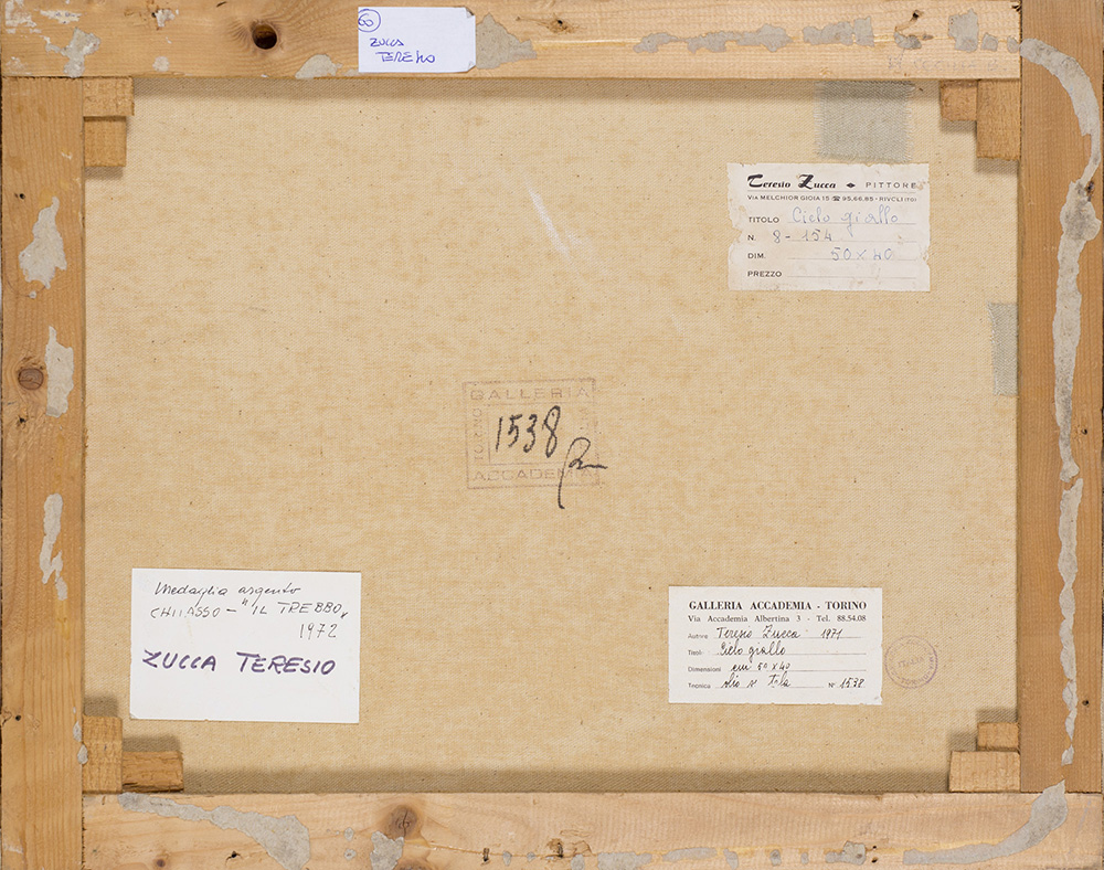 TERESIO ZUCCA (1926-2016) Cielo Giallo, 1971 Olio su tela cm 40x50 Firma al...